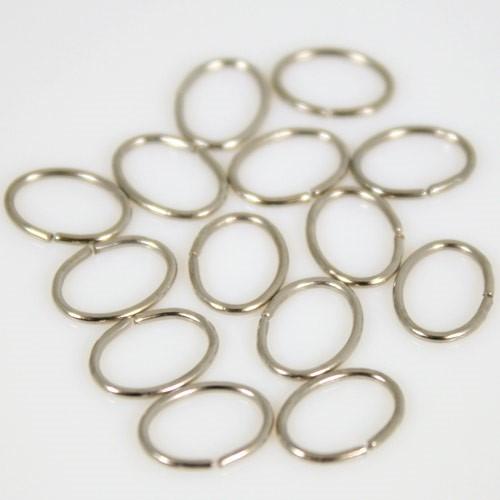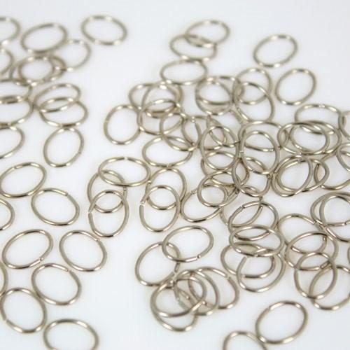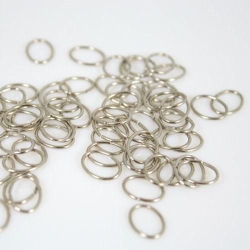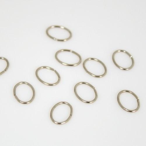 Questi connettori ad anello hanno una finitura nickelata, un diametro di 9 mm e una forma ovale, leggermente schiacciata.