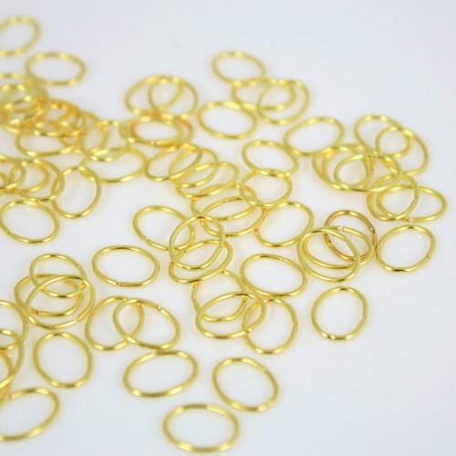 Questi connettori ad anello hanno una finitura in ottone brillante, un diametro di 9 mm e una forma ovale, leggermente schiacciata.