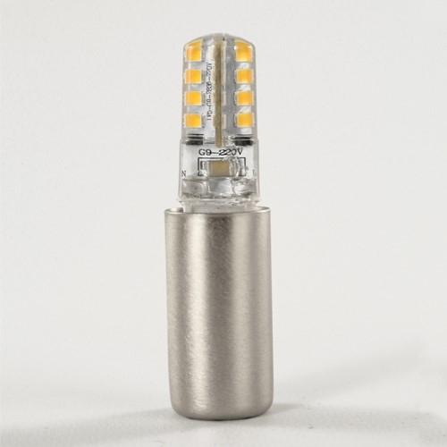 Bicchierino copri porta lampada metallico con attacco G9, finitura in nickel spazzolato.