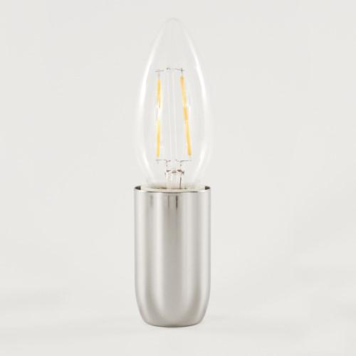 Bicchierino portalampada in metallo con finitura di colore nickel, con attacco E14.