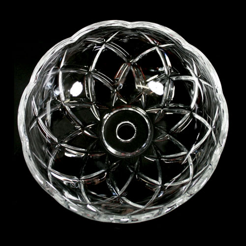 Coppa porta-lampada bobeche in vetro per lampadari in stile Maria Teresa, restauro di lampade e illuminazione classica. La bobeche ha diametro di 12,5 cm e foro centrale di 12 mm per il passaggio del portacandela. Dedicato alla componentistica per illuminazione e decor in vetro e cristallo, il ricco assortimento e trova tutto quello che puo' servire per creare allestimenti e composizioni decorative.