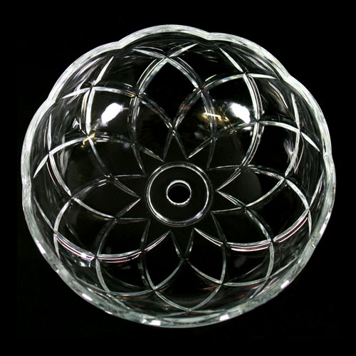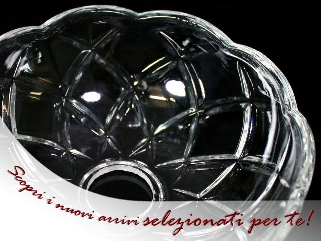 Coppa in vetro per lampadari cristallo, lampadari Maria Teresa, restauro di lampade e illuminazione classica. Misura 15 cm in diametro ed ha un foro centrale di 12 mm. La tazza, in vetro trasparente pressato, può essere usata per molteplici utilizzi, tradizionalmente come fondino o tazza portalampade per lampadari cristallo, ma anche per adagiarvi composizioni floreali, realizzare centrotavola e altri allestimenti creativi.