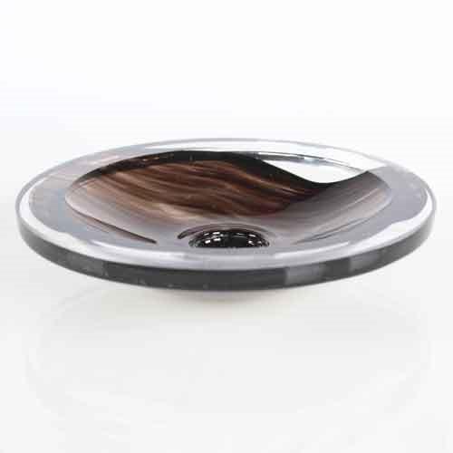 Bobeche o coppa per lampadario in vetro di Murano colore cristallo e nero. diametro circa 90 mm foro centrale Ø 10 mm profondità di 20 mm. Piattino per lampadario in vetro liscio lavorato a stampo. Il vetro cristallino è variegato con sfumature di colore di varie intensità. Questo prodotto è adatto per il restauro di lampadari vintage o per la creazione di illuminazione di design. Il prodotto, realizzato in vetro veneziano in Italia negli anni '80, è proposto in vendita fino a esaurimento, in quanto realizzato da una fabbrica di lampadari ormai chiusa. Per via del periodo di produzione i prodotti possono avere qualche imperfezione, ma sono imballati e non sono mai stati usati. Sono articoli difficili da trovare sul mercato e nel nostro sito potete trovare una vasta gamma di prodotti fuori produzione. Visita le altre sezioni per scoprirne di più.