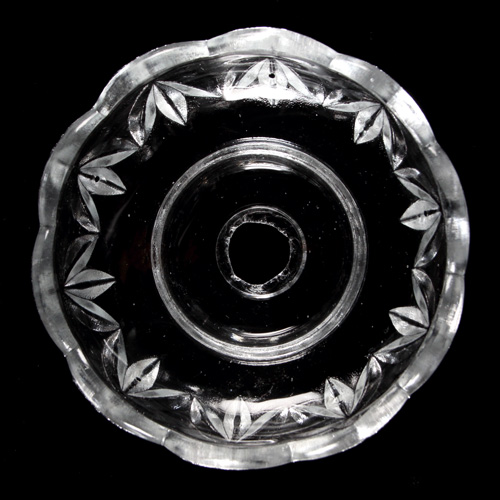 Bobeche tazza in cristallo Boemia Ø9 cm, foro Ø14 mm, 5 fori laterali. Bordo molato, per restauro lampadari.