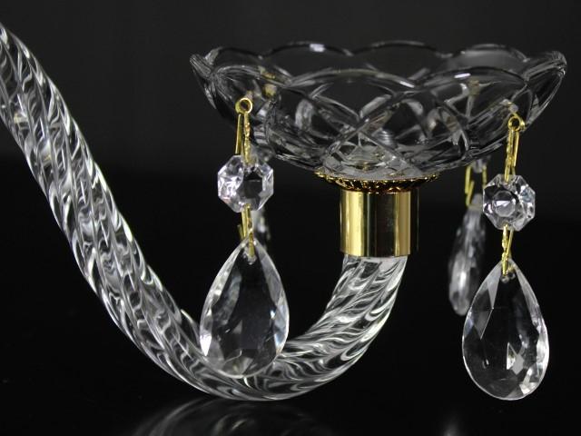 Braccio in vetro cristallino finitura ritorta, 20 cm lunghezza, attacchi color oro.