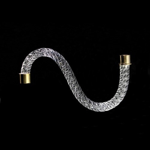 Braccio per lampadario in vetro soffiato a stampo, colore puro trasparente con effetto torciglione. Elemento classico per la produzione di lampadari stile veneziano, lampadari Maria Teresa e molti altri modelli di lampadari in vetro e lampadari in cristallo. Questi elementi sono dotati di attacco per l'inserimento di tubi standard filettati Ø10 mm. Possono essere utilizzati come componente per la costruzione, il restauro e l'allestimento di lampadari, lampade e candelabri.
