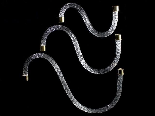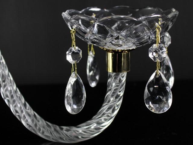 Braccio in vetro cristallino finitura ritorta, 36 cm lunghezza, attacchi color oro.