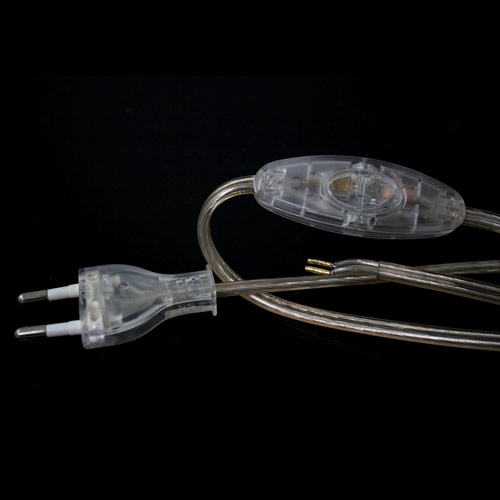 Cablaggio classe 2 con interruttore - 100 cm (spina) + 50 cm (attacco) - PVC colore trasparente. Provvisto di interuttore e spina colore trasparente è perfetto per restaurare lampade e abat-jour. Le misure si riferiscono alla distana tra spina e l'interruttore (100 cm) e la distanza tra attacco e interruttore (50 cm), per un'altezza totale di 150 cm.Il cavo elettrico lo potete trovare disponibile in vari colori: bianco, oro e rosso, per neccessità particolari potete chiedere aiuto al nostro staff!