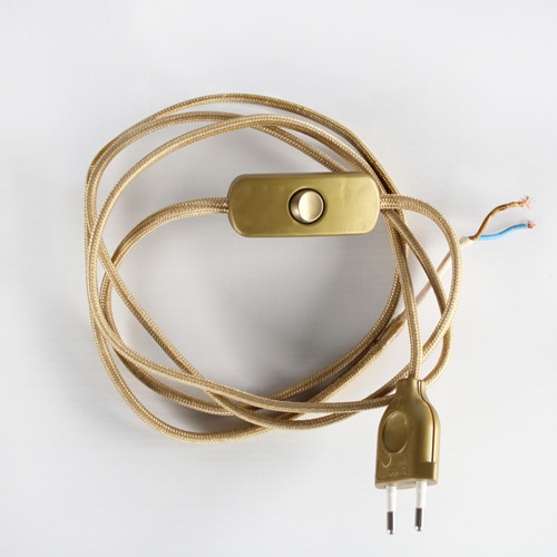 Cablaggio con interruttore e cavo tessile oro 2x0,75 mmq L100 cm (spina) + L100 cm (attacco)