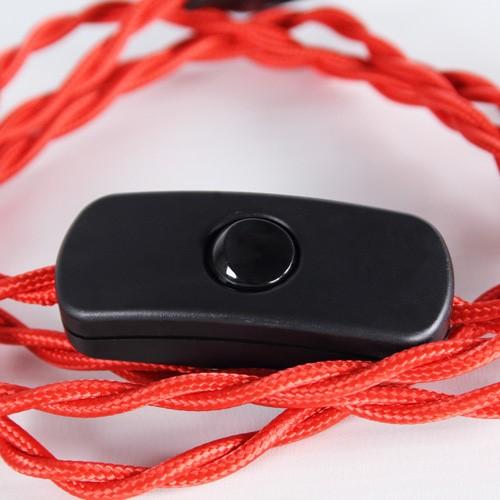 Cablaggio 2x0,75 mmq per lampada, cavo treccia tessile rosso con interuttore e spina nera, 100 cm (spina) + 50 cm (attacco) L150 cm.