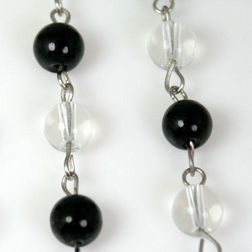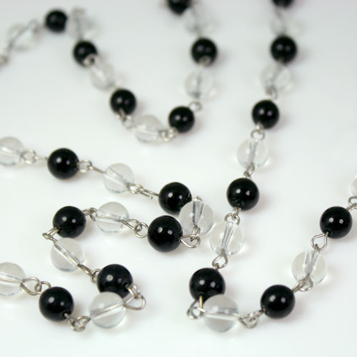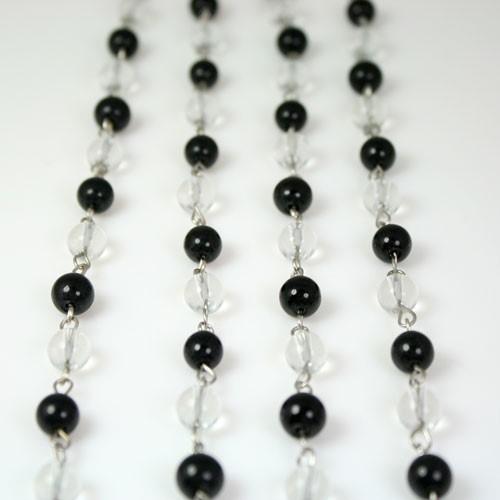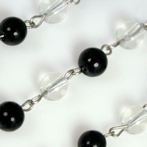Catena 100 cm perle Ø 8 mm, tondino liscio colore cristallo e nero, spillo a occhiello nickel