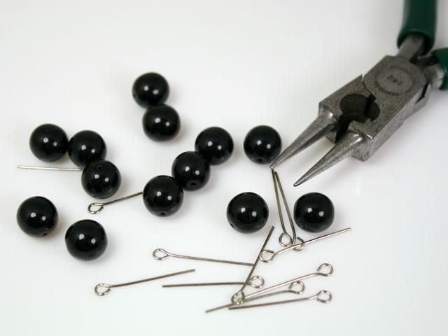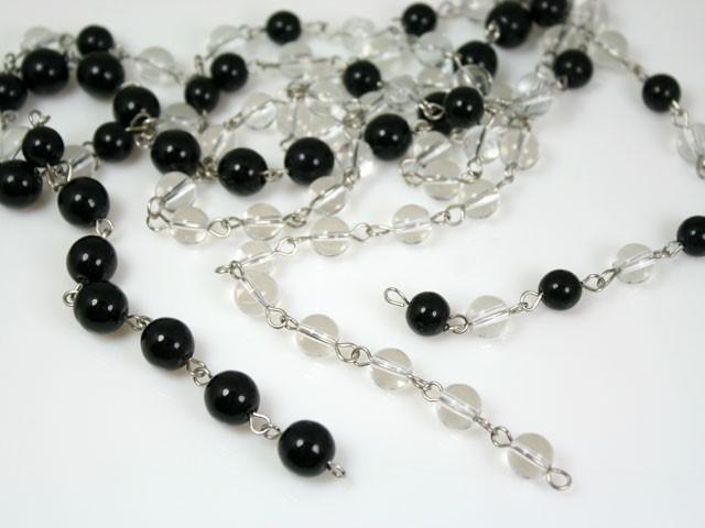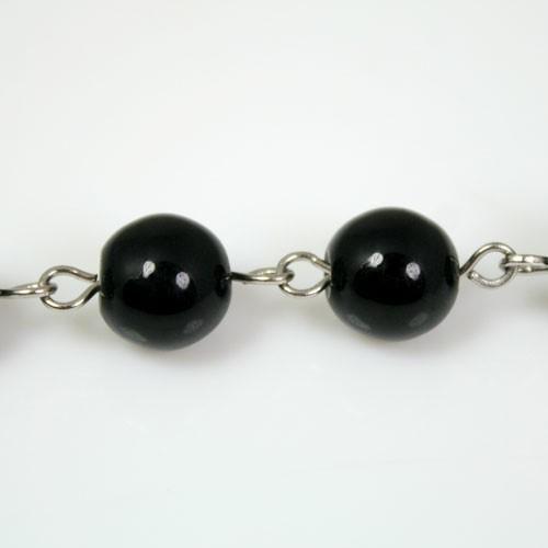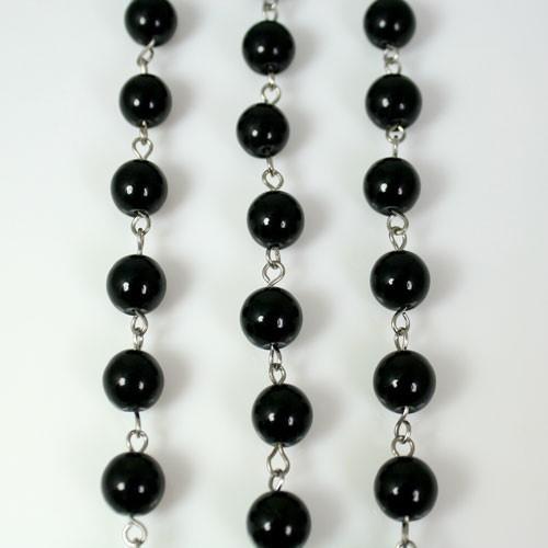 Catena 100 cm perle Ø10 mm, tondino liscio colore nero, spillo a occhiello nickel