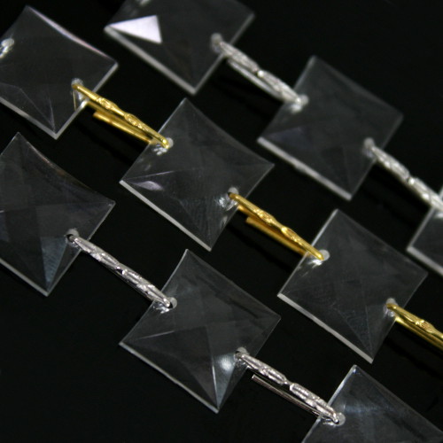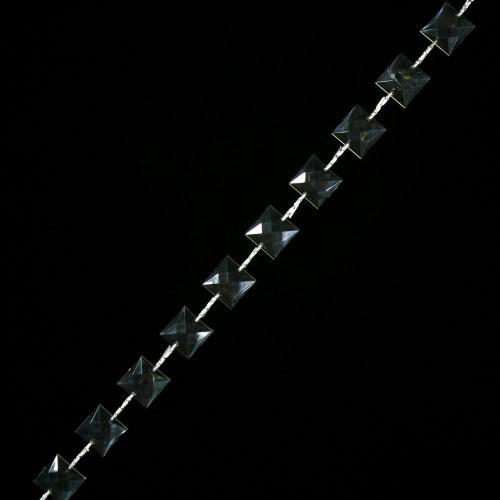 Catena di quadrucci Ø 14 mm in cristallo acrilico trasparente, lunghezza 50 cm.