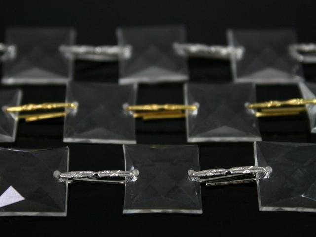 La catena è realizzata con cristalli acrilici (PMMA) e connettori metallici a clip;