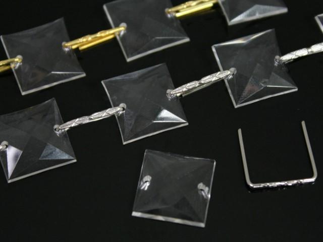 Catena ghirlanda di quadrucci 14 mm in cristallo acrilico colore puro, clip nickel, lunghezza 50 cm