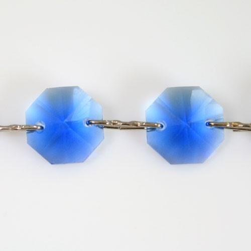 Brillante catena di ottagoni in cristallo molato, dal diametro 14 mm e lunghezza 50 cm. La catena in oggetto è realizzata con connettori a clip "stella" in nikel galvanico; consulta il nostro catalogo o contattaci per finiture differenti.