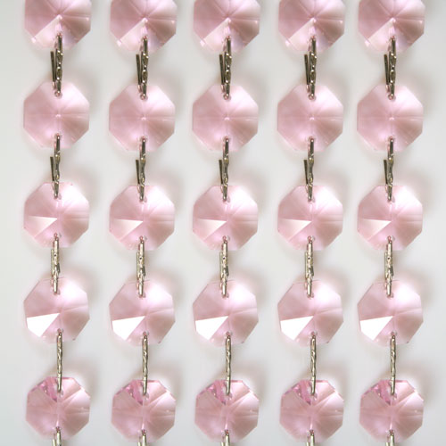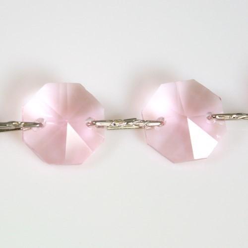 Catena di ottagoni sfaccettati in cristallo molato colore rosa, diametro 14 mm e lunghezza 50 cm.