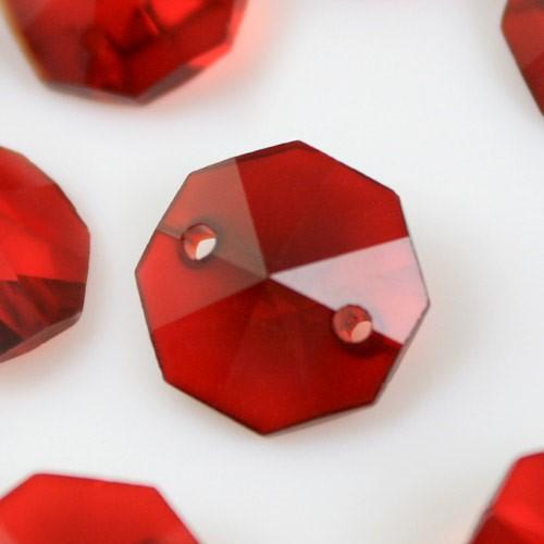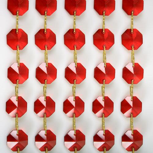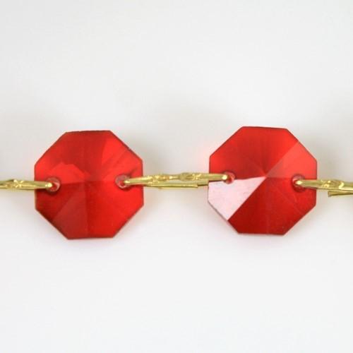 Catena ottagoni 14 mm in cristallo rosso, lunghezza 50 cm, clip ottone.