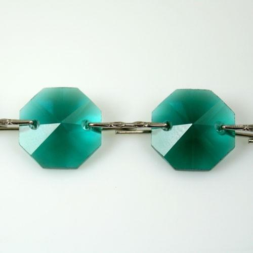 Brillante catena di ottagoni in cristallo molato, dal diametro 14 mm e lunghezza 50 cm. La catena in oggetto è realizzata con connettori a clip "stella" colore nikel; consulta il nostro catalogo o contattaci per finiture differenti.