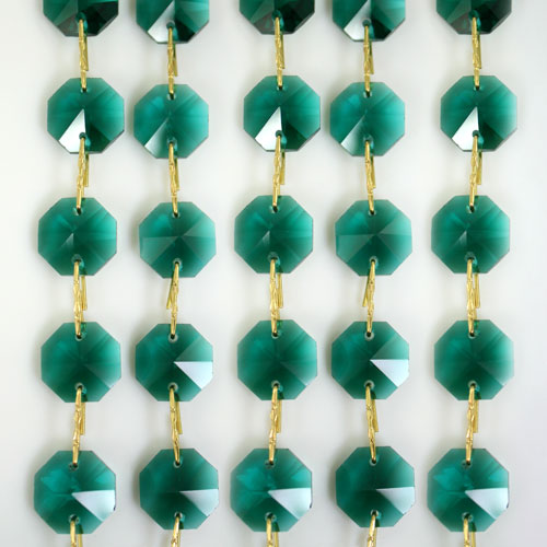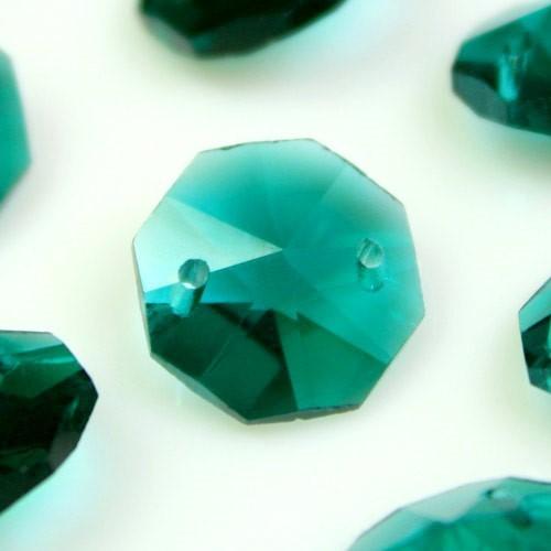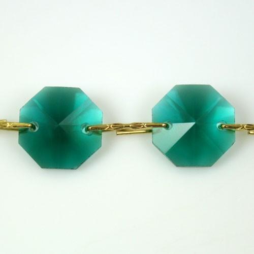 Catena ottagoni 14 mm in cristallo verde scuro, lunghezza 50 cm. Clip ottone.
