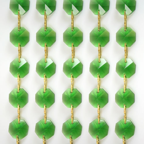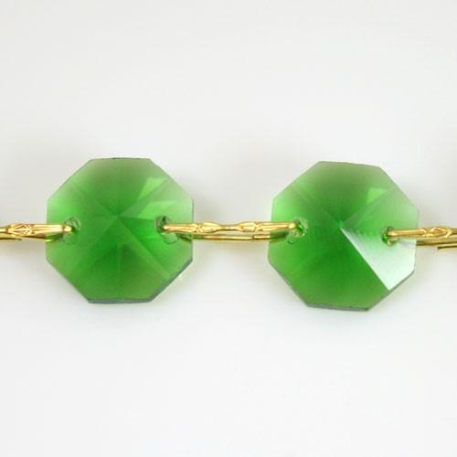 Chain octagons 14 mm in green crystal, length 50 cm, brass clip.