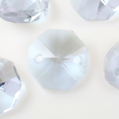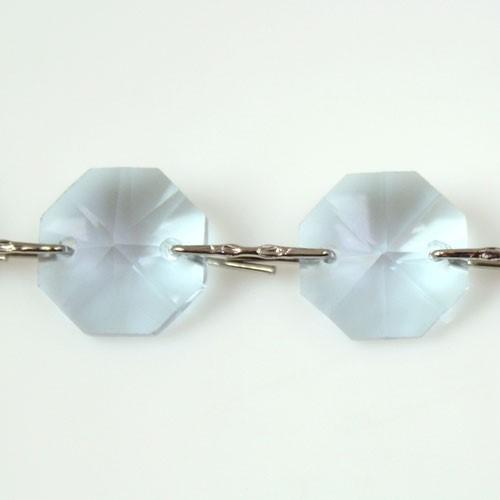 Brillante catena di ottagoni in cristallo molato, dal diametro 14 mm e lunghezza 50 cm. La catena in oggetto è realizzata con connettori a clip "stella" colore nickel; consulta il nostro catalogo o contattaci per finiture differenti.