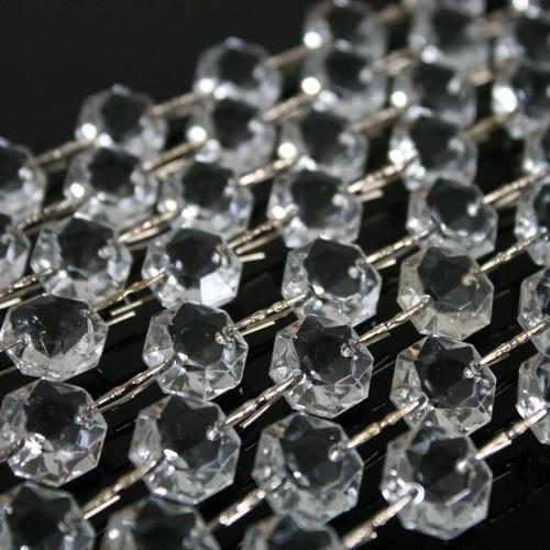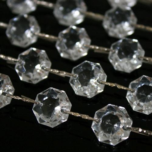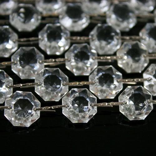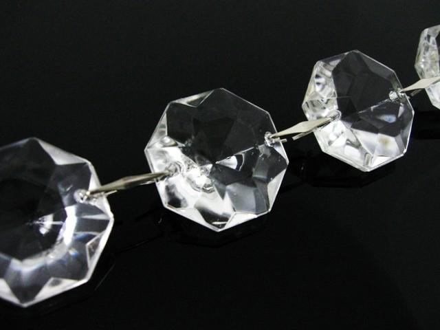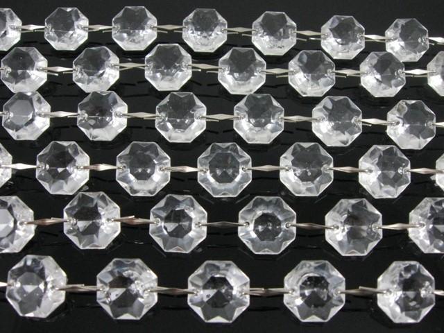 Catena ottagoni 14 mm in vetro veneziano color cristallo, lunghezza 50 cm, clip nickel.
