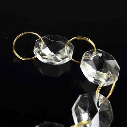 Catena di ottagoni sfaccettati in cristallo molato, lunghezza 1 metro, unite da   anello brise' ottone.