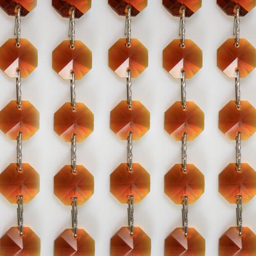 Brillante catena di ottagoni in cristallo molato ambra, dal diametro 16 mm e lunghezza 50 cm. La catena in oggetto è realizzata con connettori a clip "stella" colore nickel; consulta il nostro catalogo o contattaci per finiture differenti.