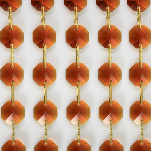 Brillante catena di ottagoni in cristallo molato, dal diametro 16 mm e lunghezza 50 cm. La catena in oggetto è realizzata con connettori a clip "stella" colore ottone; consulta il nostro catalogo o contattaci per finiture differenti.