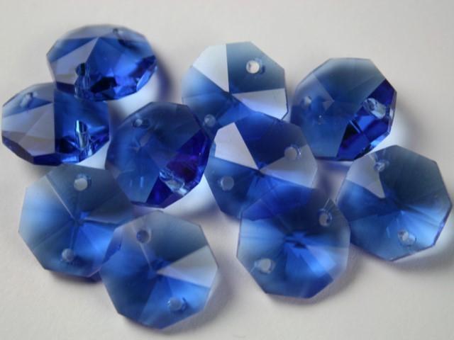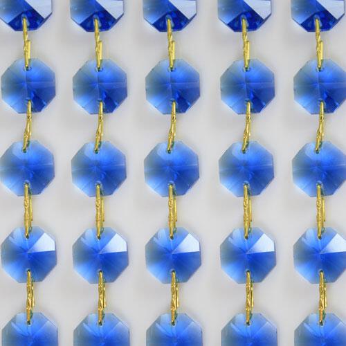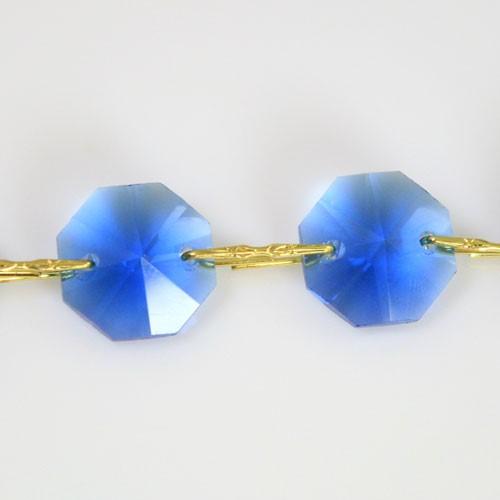 Brillante catena di ottagoni in cristallo molato colore blu chiaro, dal diametro 16 mm e lunghezza 50 cm. La catena in oggetto è realizzata con connettori a clip "stella" colore nickel; consulta il nostro catalogo o contattaci per finiture differenti.