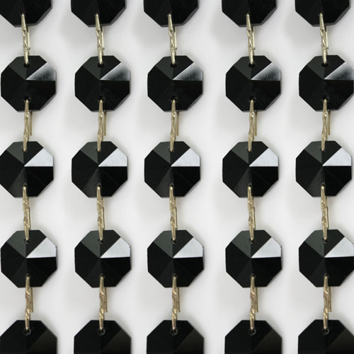 Catena di ottagoni sfaccettati in cristallo molato nero, diametro 16 mm e lunghezza 50 cm.
