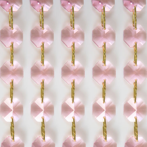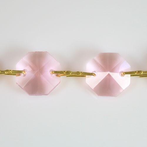 Catena di ottagoni sfaccettati in cristallo molato rosa, diametro 16 mm e lunghezza 50 cm.