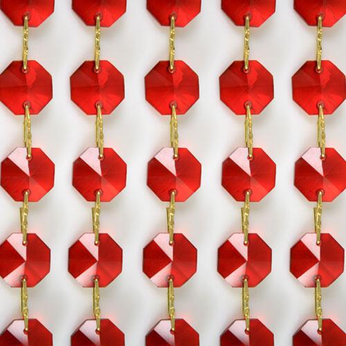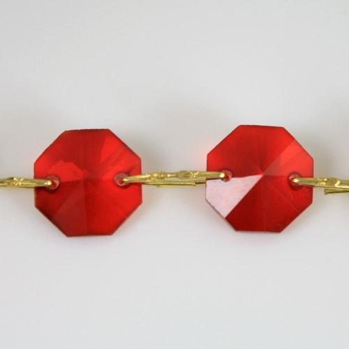Catena di ottagoni sfaccettati in cristallo molato rosso, diametro 16 mm e lunghezza 50 cm.
