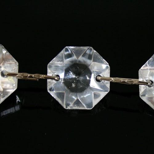 Catena di ottagoni sfaccettati in vetro cristallo veneziano, lunghezza 1 metro, unite da aggancio per cristalli color nikel