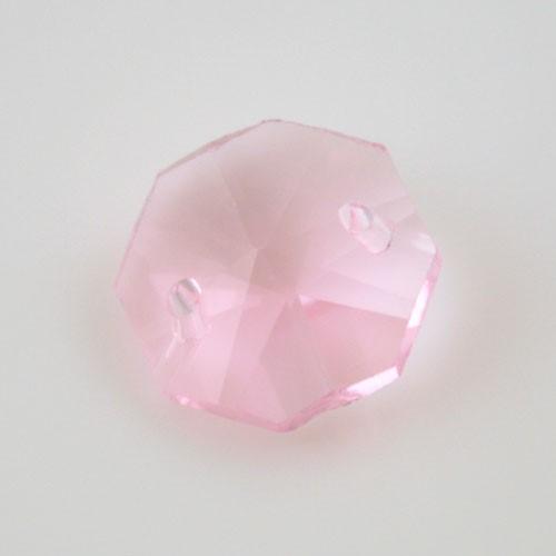 Catena ottagoni 18 mm in cristallo colore rosa, lunghezza 50 cm, clip ottone.