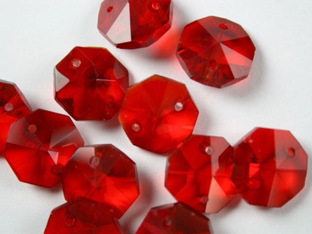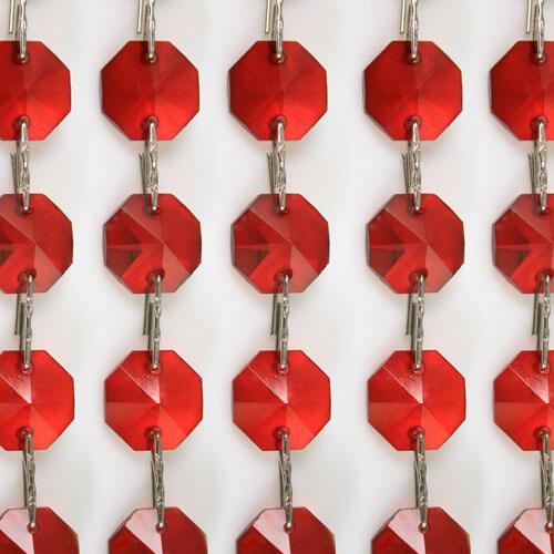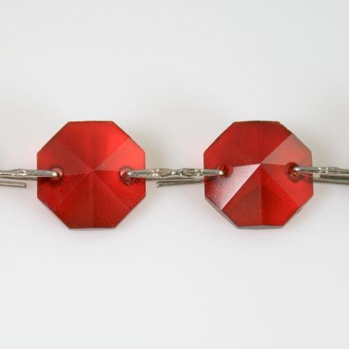 Catena di ottagoni sfaccettati in cristallo molato colore rosso, diametro 18 mm e lunghezza 50 cm.