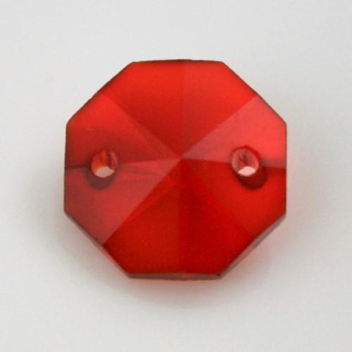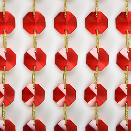 Catena di ottagoni sfaccettati in cristallo molato colore rosso, diametro 18 mm e lunghezza 50 cm.