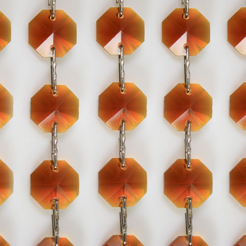 Brillante catena di ottagoni in cristallo molato, dal diametro 20 mm e lunghezza 50 cm. La catena in oggetto è realizzata con connettori a clip "stella" colore nickel; consulta il nostro catalogo o contattaci per finiture differenti.