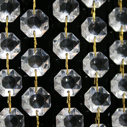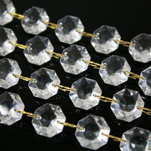 Brillante catena di ottagoni in vetro veneziano, dal diametro 20 mm e lunghezza 50 cm. La catena in oggetto è realizzata con connettori a clip "stella" colore ottone brillante; consulta il nostro catalogo o contattaci per finiture differenti.