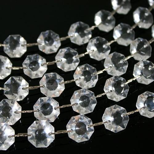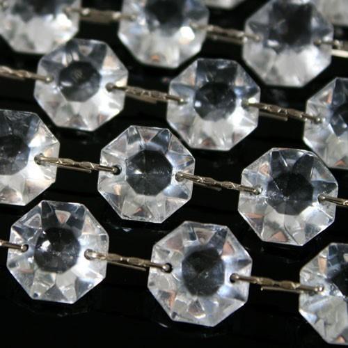 Catena di ottagoni sfaccettati in vetro cristallo veneziano, lunghezza 1 metro, unite da aggancio per cristalli color nikel.
