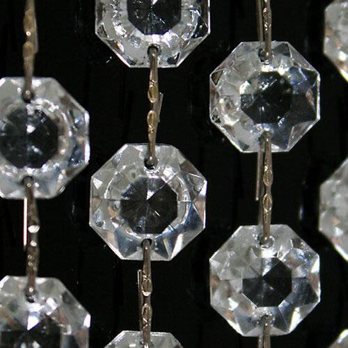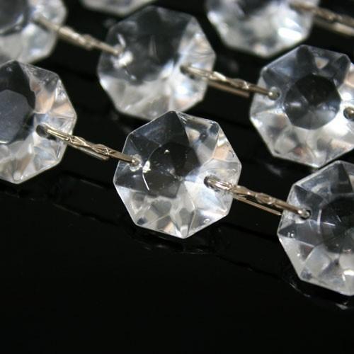 Catena di ottagoni sfaccettati in vetro cristallo veneziano, lunghezza 1 metro, unite da aggancio per cristalli color nikel.