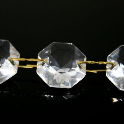 Catena di ottagoni sfaccettati in vetro cristallo veneziano, lunghezza 1 metro, unite da aggancio per cristalli color ottone.