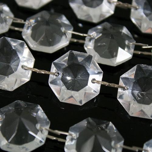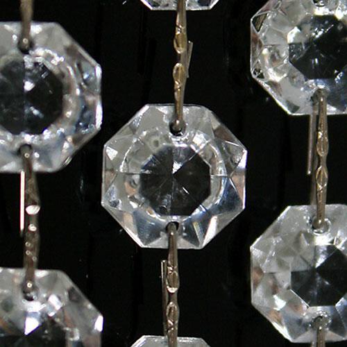 Catena di grandi ottagoni sfaccettati in vetro cristallo veneziano, lunghezza 1 metro, unite da aggancio per cristalli color nikel.