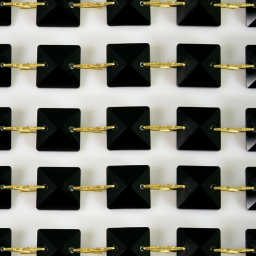 Catena quadrucci cristallo 18 mm - lunghezza 50 cm. Colore nero - clip ottone.