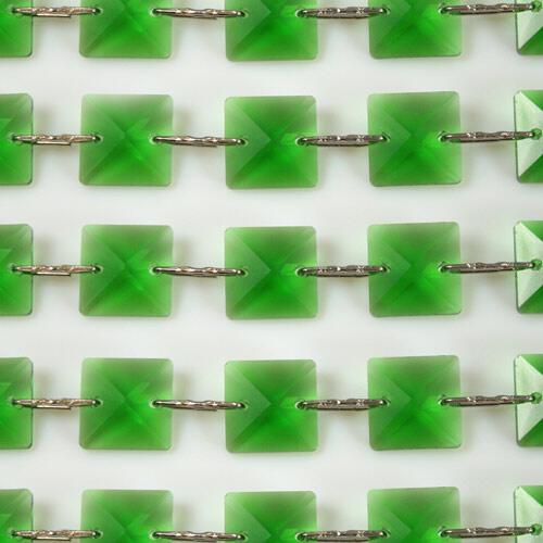 Catena di cristalli sfaccettati 18mm colore verde clip nikel, lunghezza 50 cm.