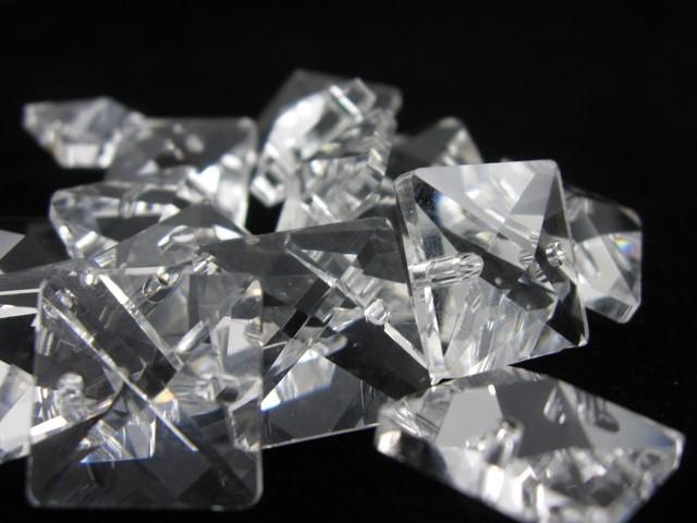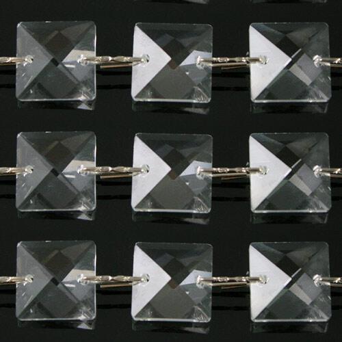 Catena di quadrucci in cristallo colore puro 20mm, lunghezza 50cm. Clip colore nikel.