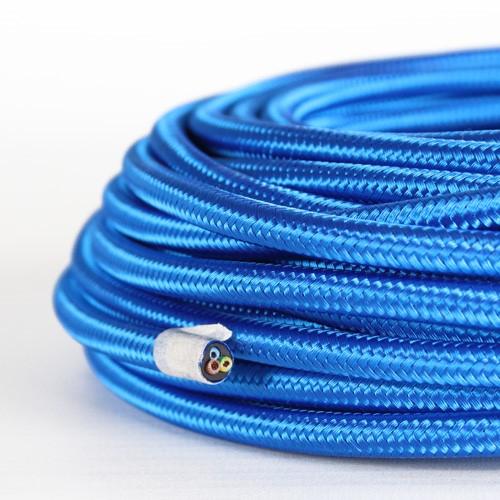 Cavo elettrico tondo isolato in PVC rivestito tessuto blue. Sezione 3x0,75