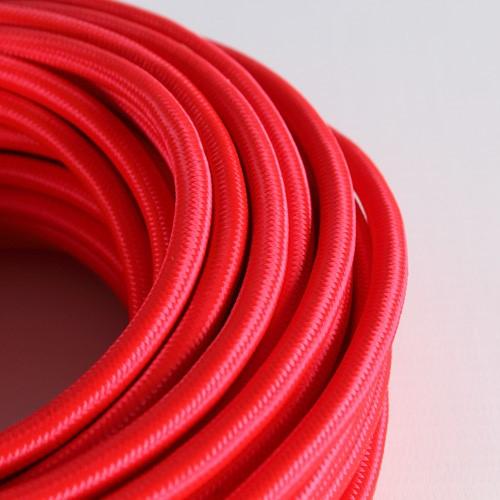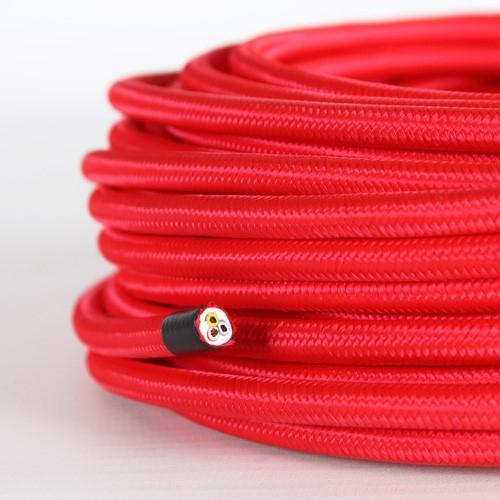 Cavo elettrico tondo isolato in PVC e rivestito in tessuto colore rosso, composto da sezione a 3 cavi. Il cavo può essere utilizzato per il restauro di opere luce e per rifare l'impianto elettrico di lampadari, abat-jour, lampade etc. Il prezzo si riferisce ad un metro: nel caso in cui si ordinassero più metri il pezzo verrà venduto intero.