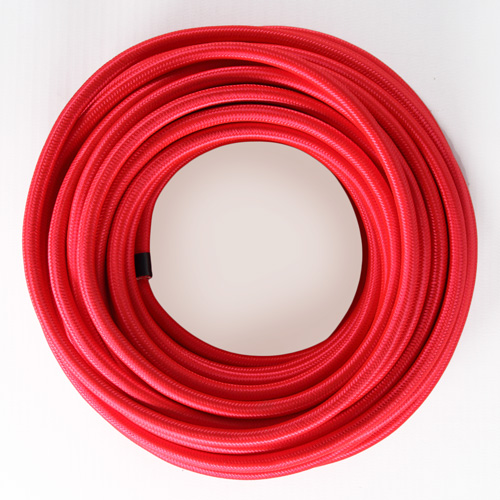 Cavo elettrico tondo isolato in PVC rivestito tessuto rosso. Sezione 3x0,75